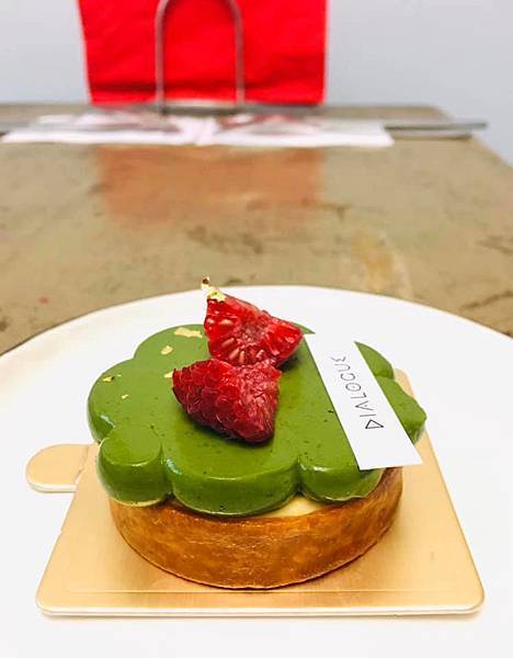 關於「綠野仙蹤」:店家很巧妙的把費南雪藏進柚子內餡,於是裹了一層又一層的抹茶甘納許,灑上了少許的金箔,並讓覆盆莓點綴在其中。覆盆莓的酸甜與柚子相呼應,似乎兩者在口中較勁,甚至把濃郁的抹茶襯托出來,這時才發現已經吃到塔皮了。而這幾種味道至今在腦海裡無法散去,Day dream裡說不定還能找到。