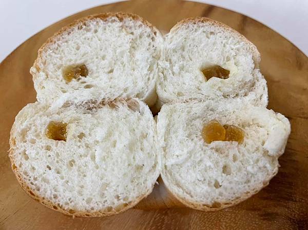 關於「抹茶紅豆白玉貝果」:店家使用日本愛知縣西尾市有機抹茶粉製作麵糰,加入闆娘家人手炒蔗糖的紅豆餡、麻糬,用料相當紮實,喜歡那微甜的紅豆餡,僅僅吃上一顆便很滿足。